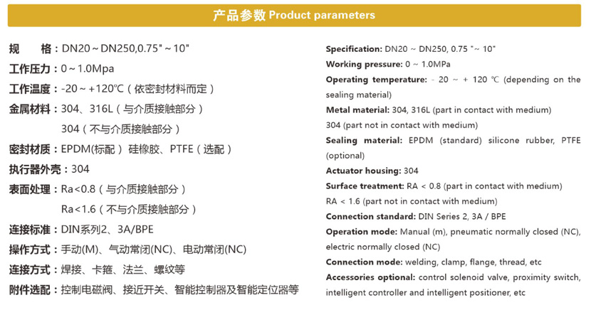 卫生级蝶阀是一种中心密封蝶阀,阀体及阀瓣选取优质不锈钢经锻造,CNC精密加工制成。用户可选用三元乙丙橡胶、硅橡胶、氟化橡胶及PTFE等密封材料。